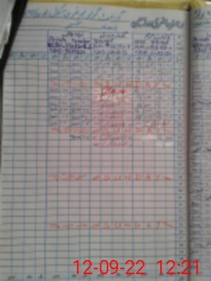| CNIC | Full Name | Designation | R/C | Absence During Last Calender Month |