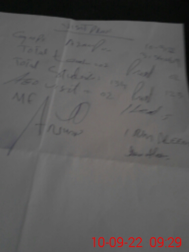 | Attendance Register | Head Teacher | MEA with School | Visit Proof |