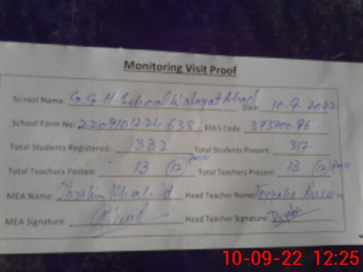 | EMIS Code: 37370096 | Name of School: GGHS WALAYAT ABAD | |||