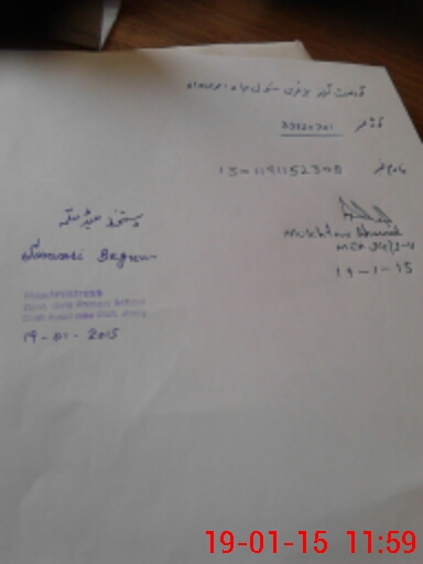 | Name: SH**** BA**** Designation: (School Headmaster's/Headmistress's) PST Phone/Cell Number: 03**** |