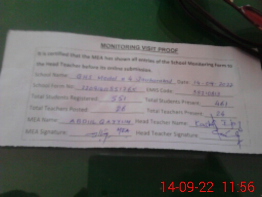 | EMIS Code: 38210813 | Name of School: GHS MODEL NO. 4 JAUHARABAD | |||