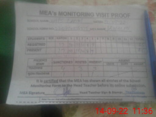 | Attendance Register | Head Teacher | MEA with School | Visit Proof |