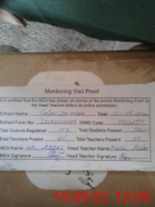 | Attendance Register | Head Teacher | MEA with School | Visit Proof |