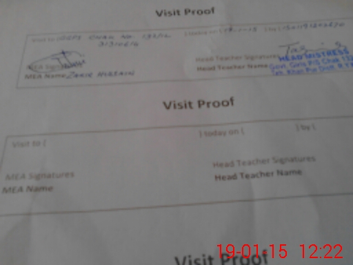 | School Visited by School Health & Nutrition Supervisor (No. of Visits) | Name1: | Mohammad Younas | Name2: | Nil | |