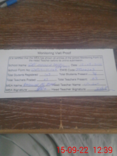 | Attendance Register | Head Teacher | MEA with School | Visit Proof |