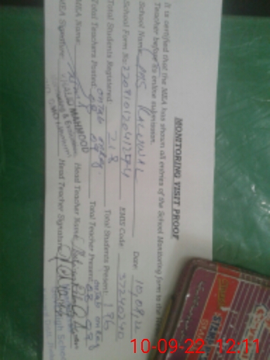 | Certified that this School was Inspected by the Undersigned MEA/DMO Today and the Information Stated Above is as Per Record. | |||||