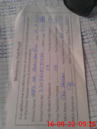 | Attendance Register | Head Teacher | MEA with School | Visit Proof |