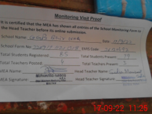 | EMIS Code: 36130492 | Name of School: GGPS BHIR WALA P/O BILLI WALA | |||
