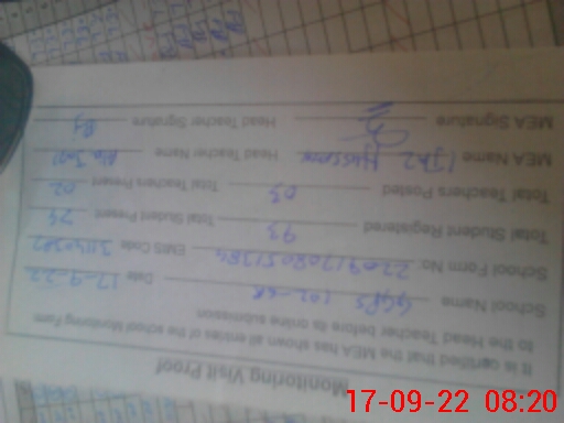 | Name: Aa**** Ja**** Designation: (School Headmaster's/Headmistress's) Est Phone/Cell Number: 03**** |