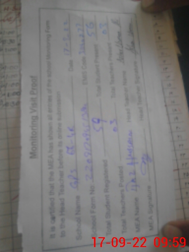| Attendance Register | Head Teacher | MEA with School | Visit Proof |