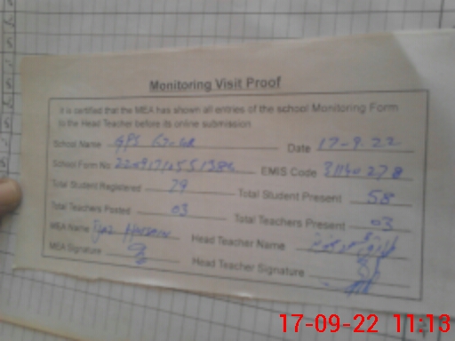 | Attendance Register | Head Teacher | MEA with School | Visit Proof |