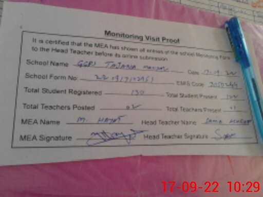 | Certified that this School was Inspected by the Undersigned MEA/DMO Today and the Information Stated Above is as Per Record. | |||||