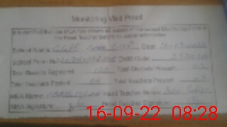 | Attendance Register | Head Teacher | MEA with School | Visit Proof |