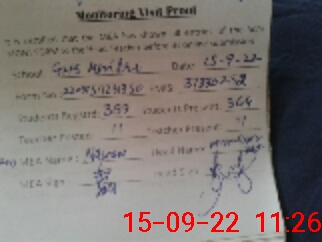 | Attendance Register | Head Teacher | MEA with School | Visit Proof |
