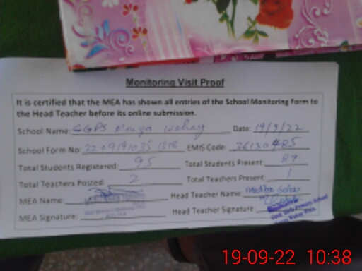 | EMIS Code: 36130485 | Name of School: GGPS MOUZA WAHAY | |||