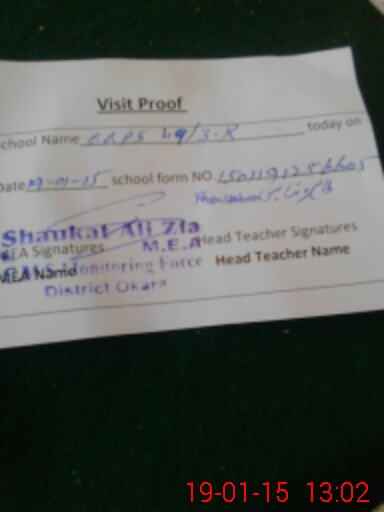 | District: OKARA | Tehsil: OKARA | Markaz: GASHKORI - FEMALE | Level: Primary | |