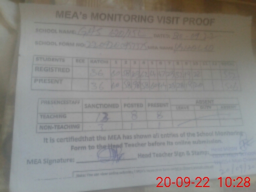 | Attendance Register | Head Teacher | MEA with School | Visit Proof |