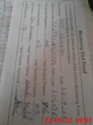 | Name: ZO**** KH**** Designation: (School Headmaster's/Headmistress's) PTC/JV Phone/Cell Number: 03**** |