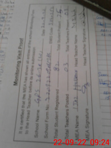 | Certified that this School was Inspected by the Undersigned MEA/DMO Today and the Information Stated Above is as Per Record. | |||||