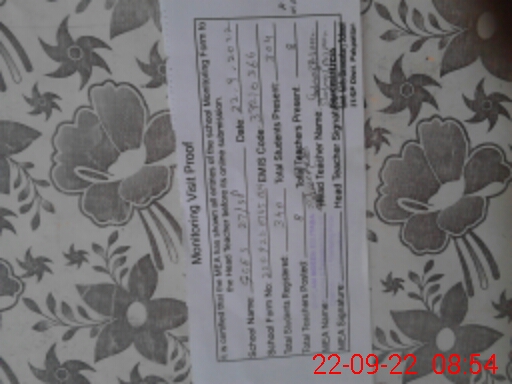 | Name: MA**** RU**** LE**** Designation: (School Headmaster's/Headmistress's) S.S.T.( ARTS) Phone/Cell Number: 03**** |