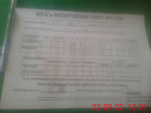| Attendance Register | Head Teacher | MEA with School | Visit Proof |