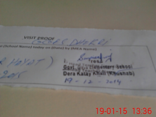 | Attendance Register | Head Teacher | MEA with School | Visit Proof |