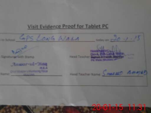 | Attendance Register | Head Teacher | MEA with School | Visit Proof |