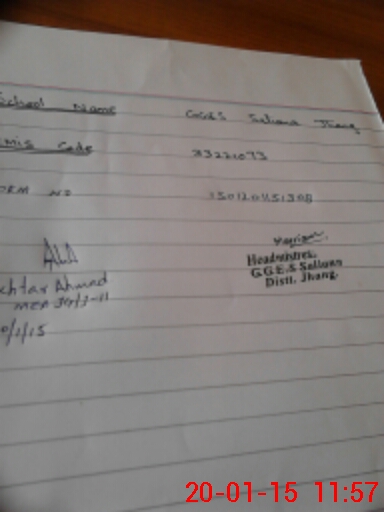 | Name: Ma**** No**** Designation: (School Headmaster's/Headmistress's) SST Phone/Cell Number: 03**** |