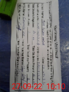 | Monitoring Date: 27-09-2022 | Start Time: 27-09-2022 09:04 AM | End Time: 27-09-2022 10:17 AM | Name of MEA: Ch**** Di**** | |