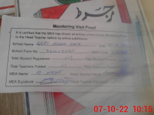 | EMIS Code: 31150366 | Name of School: GGPS MOSAM WALA | |||