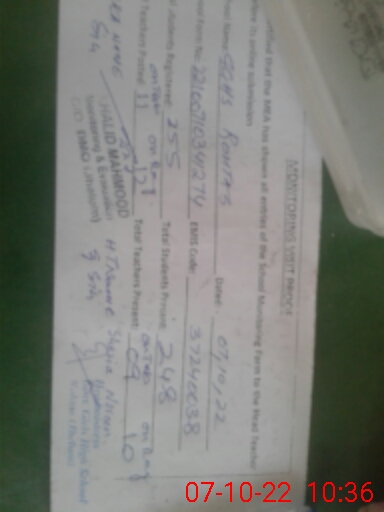 | Certified that this School was Inspected by the Undersigned MEA/DMO Today and the Information Stated Above is as Per Record. | |||||