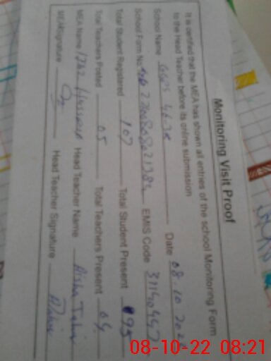 | Certified that this School was Inspected by the Undersigned MEA/DMO Today and the Information Stated Above is as Per Record. | |||||