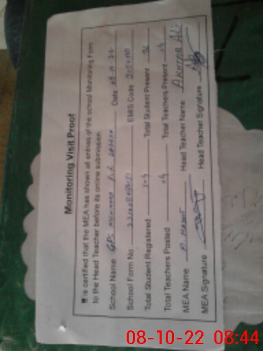 | Certified that this School was Inspected by the Undersigned MEA/DMO Today and the Information Stated Above is as Per Record. | |||||