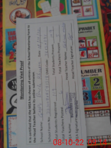 | Attendance Register | Head Teacher | MEA with School | Visit Proof |