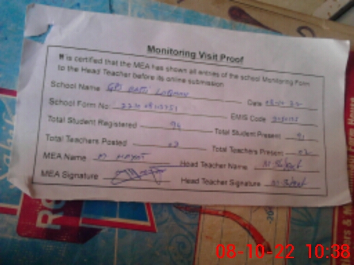 | Certified that this School was Inspected by the Undersigned MEA/DMO Today and the Information Stated Above is as Per Record. | |||||