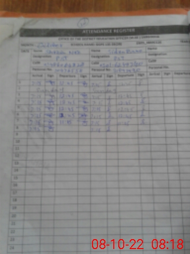 | Name: Sh**** Na**** Designation: (School Headmaster's/Headmistress's) PST Phone/Cell Number: 03**** |