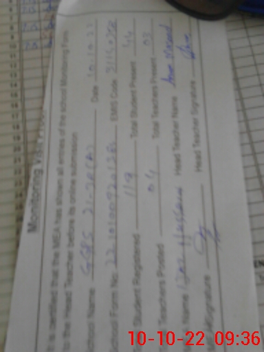 | Name: AN**** MA**** Designation: (School Headmaster's/Headmistress's) Pst Phone/Cell Number: 03**** |