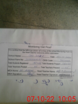 | Certified that this School was Inspected by the Undersigned MEA/DMO Today and the Information Stated Above is as Per Record. | |||||