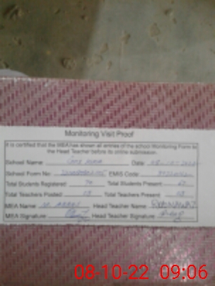 | Certified that this School was Inspected by the Undersigned MEA/DMO Today and the Information Stated Above is as Per Record. | |||||