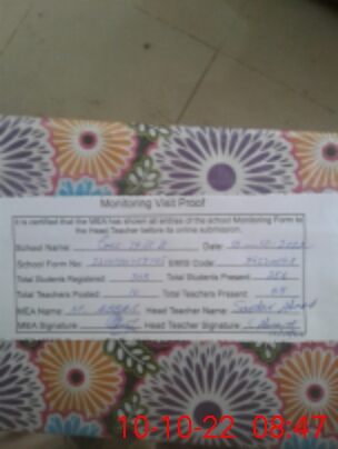 | Certified that this School was Inspected by the Undersigned MEA/DMO Today and the Information Stated Above is as Per Record. | |||||