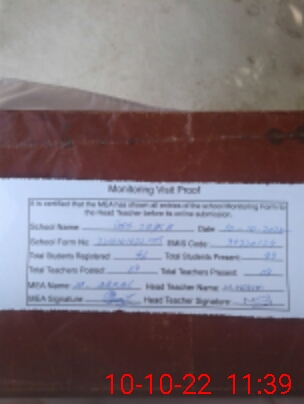 | Certified that this School was Inspected by the Undersigned MEA/DMO Today and the Information Stated Above is as Per Record. | |||||