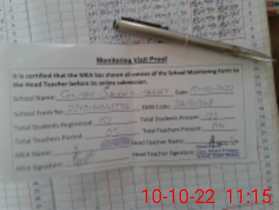 | Attendance Register | Head Teacher | MEA with School | Visit Proof |
