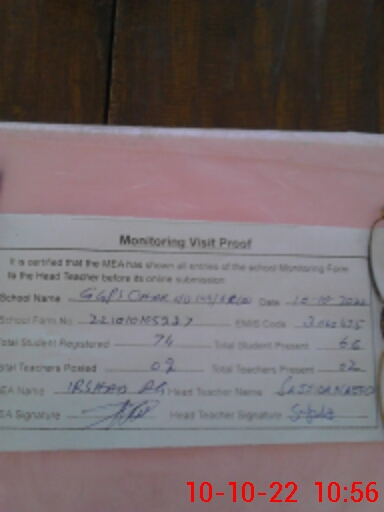 | Attendance Register | Head Teacher | MEA with School | Visit Proof |