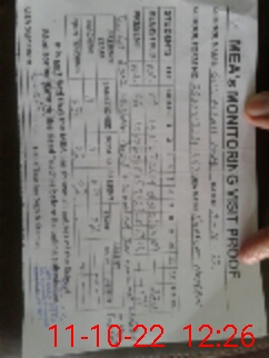 | Monitoring Date: 11-10-2022 | Start Time: 11-10-2022 11:23 AM | End Time: 11-10-2022 12:41 PM | Name of MEA: Sh**** Na**** | |