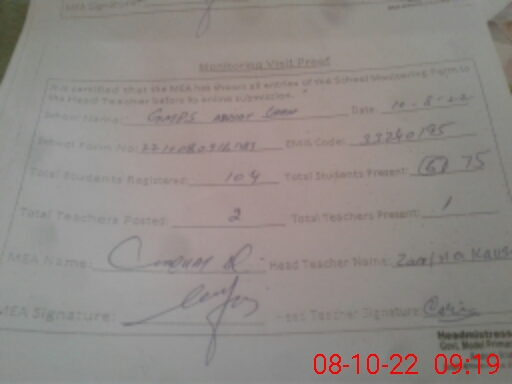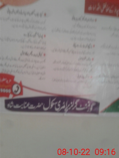 | EMIS Code: 33240195 | Name of School: GMPS ANAYAT SHAH | |||