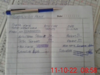 | Attendance Register | Head Teacher | MEA with School | Visit Proof |