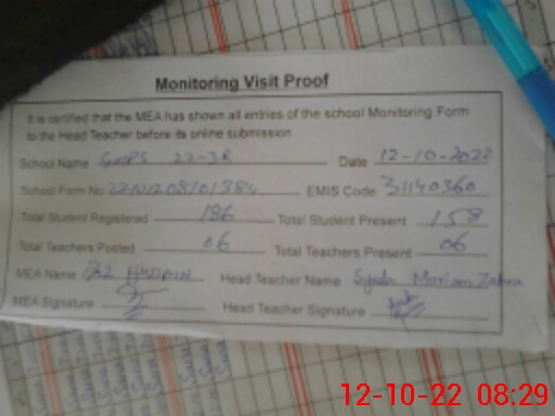 | EMIS Code: 31140360 | Name of School: GMPS CHAK NO. 22/3-R | |||