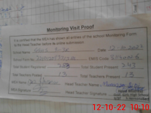| EMIS Code: 31140026 | Name of School: GGHS CHAK NO 9/3-R | |||