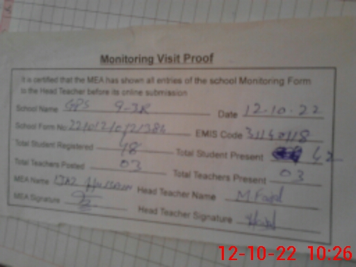 | EMIS Code: 31140118 | Name of School: GPS CHAK NO 9/3-R | |||