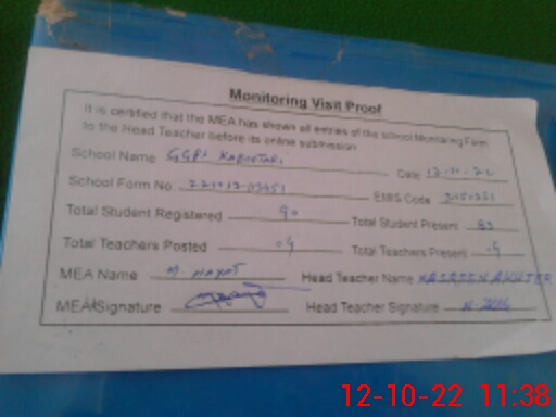 | EMIS Code: 31150351 | Name of School: GGPS KABOOTRI NO. 1 | |||